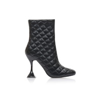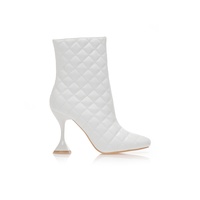 Μποτάκια λευκά δερματίνη καπιτονέ με εξωτερικές ραφές και ιδιαίτερο τακούνι | TSOUKALAS